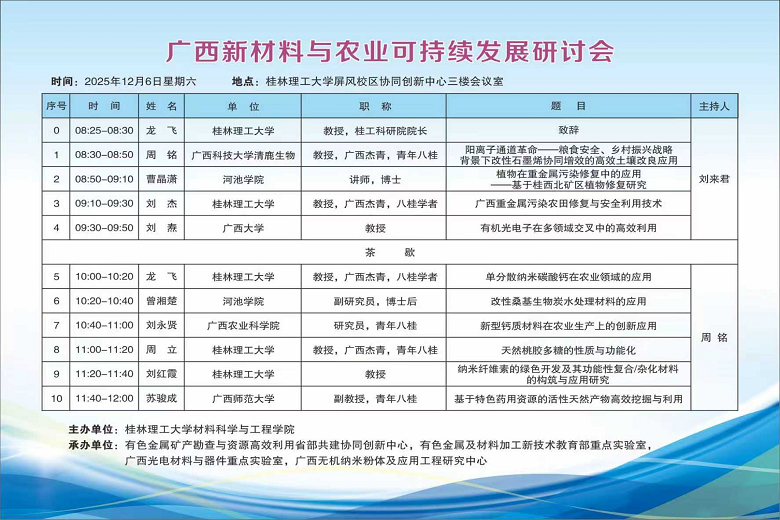 广西新材料与农业可持续发展研讨会会议安排